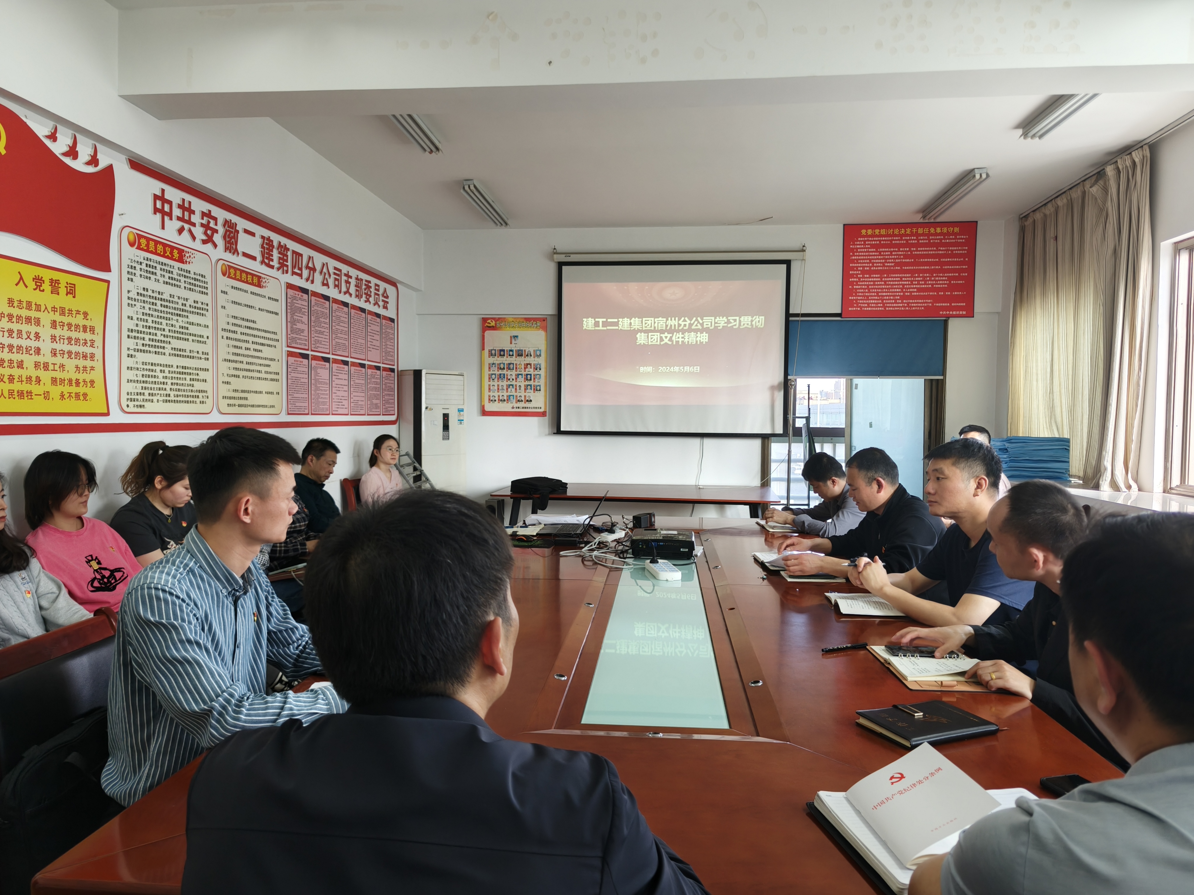5月6日下午,建工二建宿州分公司召開專題會議,學習宣貫安徽建工集團文件精神,會議由黨支部副書記程茂勇主持,宿州分公司全體黨員參會。