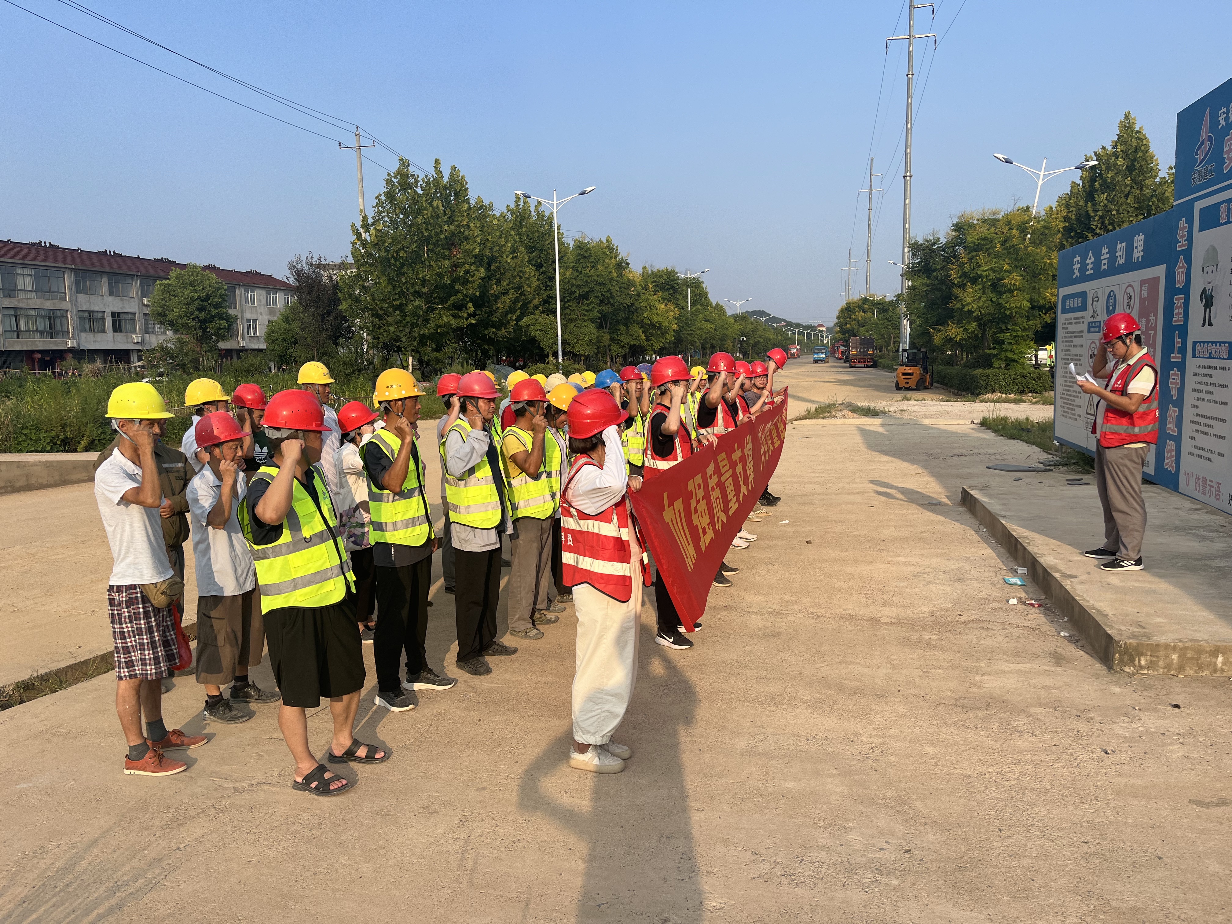 全體職工莊嚴宣誓,承諾嚴格遵守質量管理制度,認真履行職責,確保工程質量。隨后的簽字儀式上,大家在橫幅上鄭重簽名,每一筆都代表對質量的堅守。