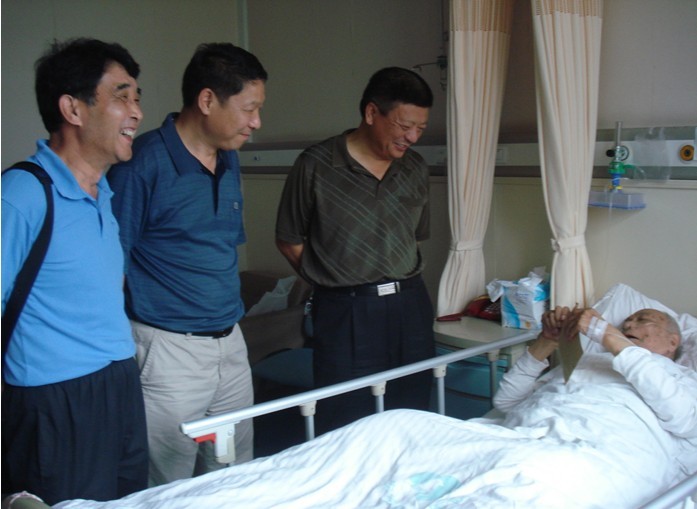 圖為公司黨委書記朱治淮(右一)、工會(huì)主席李林(右二)在省立醫(yī)院看望老干部劉弘毅
