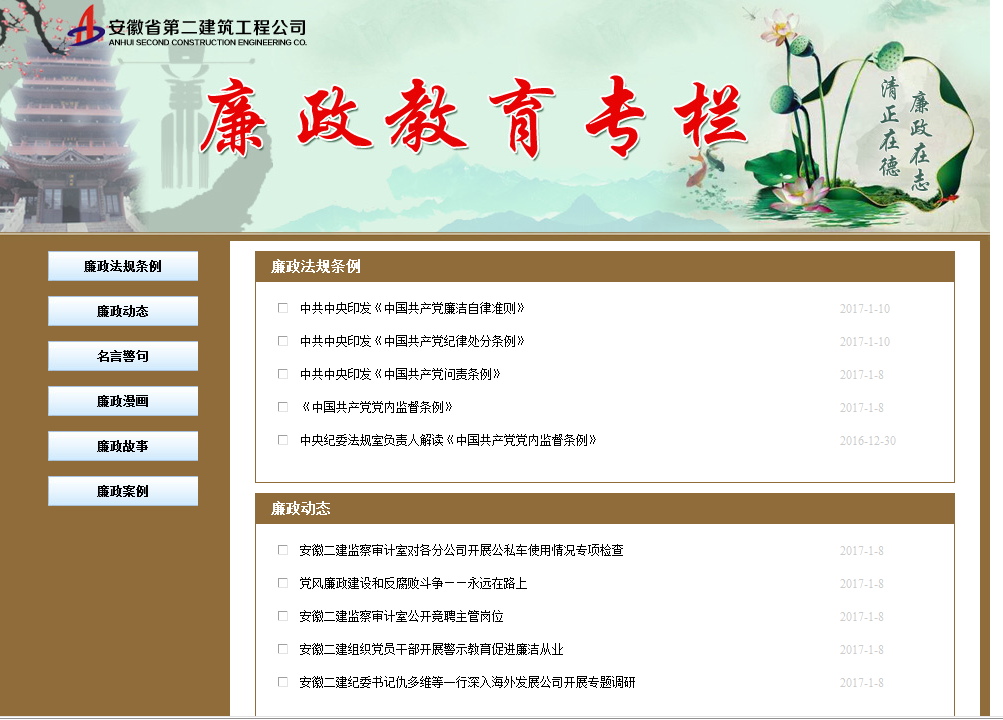 為實(shí)現(xiàn)廉政教育工作日?;?、動(dòng)態(tài)化,同時(shí)結(jié)合省國(guó)資委、集團(tuán)紀(jì)委工作要求,經(jīng)過(guò)前期的創(chuàng)意和材料收集,在信息部的大力支持下,公司紀(jì)委《廉政教育專欄》于2017年1月10日正式上線。