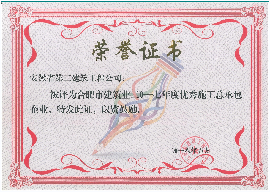 2017年度合肥建筑業(yè)優(yōu)秀施工總承包企業(yè)