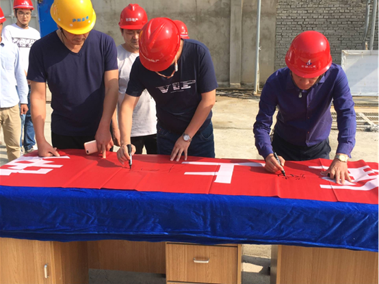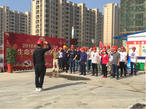 上午8點,項目經(jīng)理張尚禮傳達了公司關(guān)于開展安全生產(chǎn)月主題及宣誓活動的精神,對活動提出了要求。隨后專職安全員劉振中帶領(lǐng)項目全體員工莊嚴(yán)地舉起右手鄭重宣誓,并在“生命至上,安全發(fā)展”橫幅上簽字。